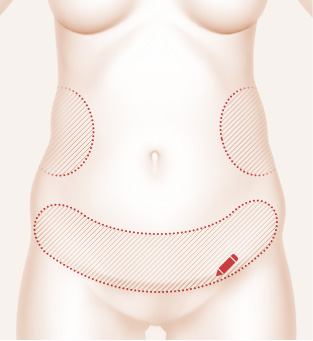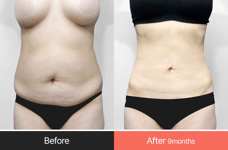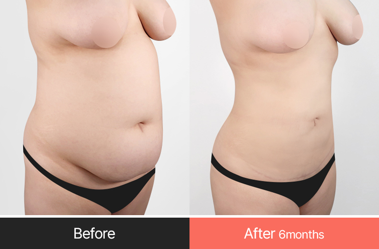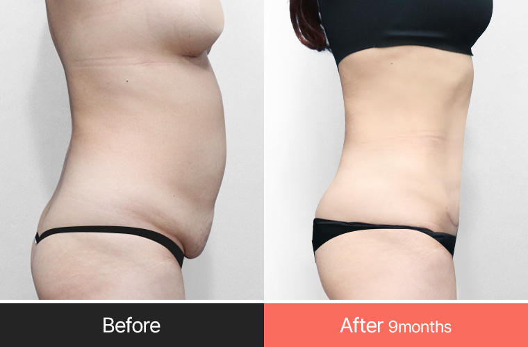 After making a smile line incision below the belly button, correct the sagging skin according to the body shape.