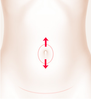 If the upper abdomen lacks elasticity, the navel can become flattened and horizontal in shape. With Modelline’s unique technique, the suspensory ligament is shortened to help maintain elasticity.