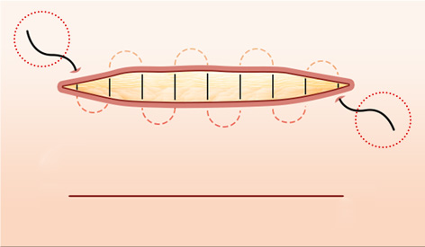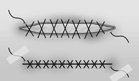Suturing in an up-and-down zigzag pattern that leaves visible scars