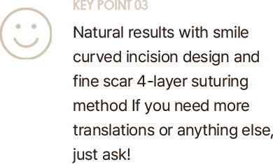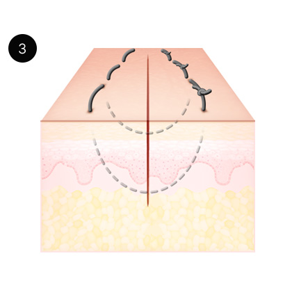 To make scars invisible, a triple-layer suturing is performed beneath the skin.