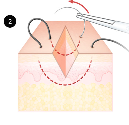 Delicately perform 4-layer suturing using micro-scar closure technique.