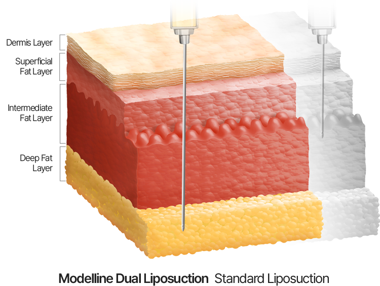 One large-volume suction from the intermediate fat layer using a standard cannula