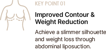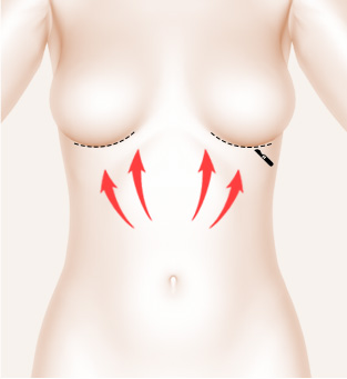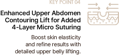 For those who still lack elasticity in the upper abdomen after surgery, a continuous thread from the navel to the inframammary line is used to prevent sagging and lift the abdomen into a beautiful shape.