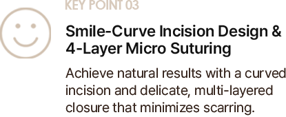 To make scars invisible, a triple-layer suturing is performed beneath the skin.