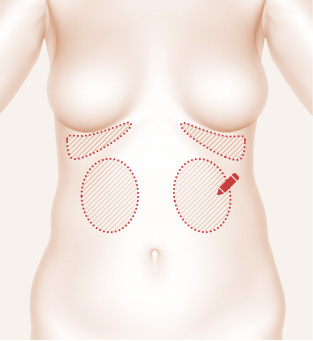 The fat around the navel is fibrotic and requires very delicate suction. At Modelline, we use a micro-cannula to gently suction the area around the navel.