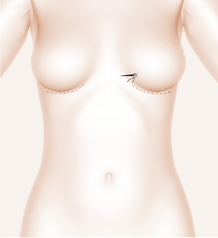After making an incision along the smile line under the breast, correct the sagging skin to fit the body shape.