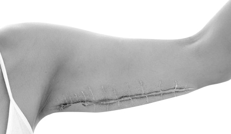 If the skin remains folded even after surgery, a very small dissolvable thread is hooked onto the upper arm and pulled tight, lifting the skin to create a neat and smooth shape.